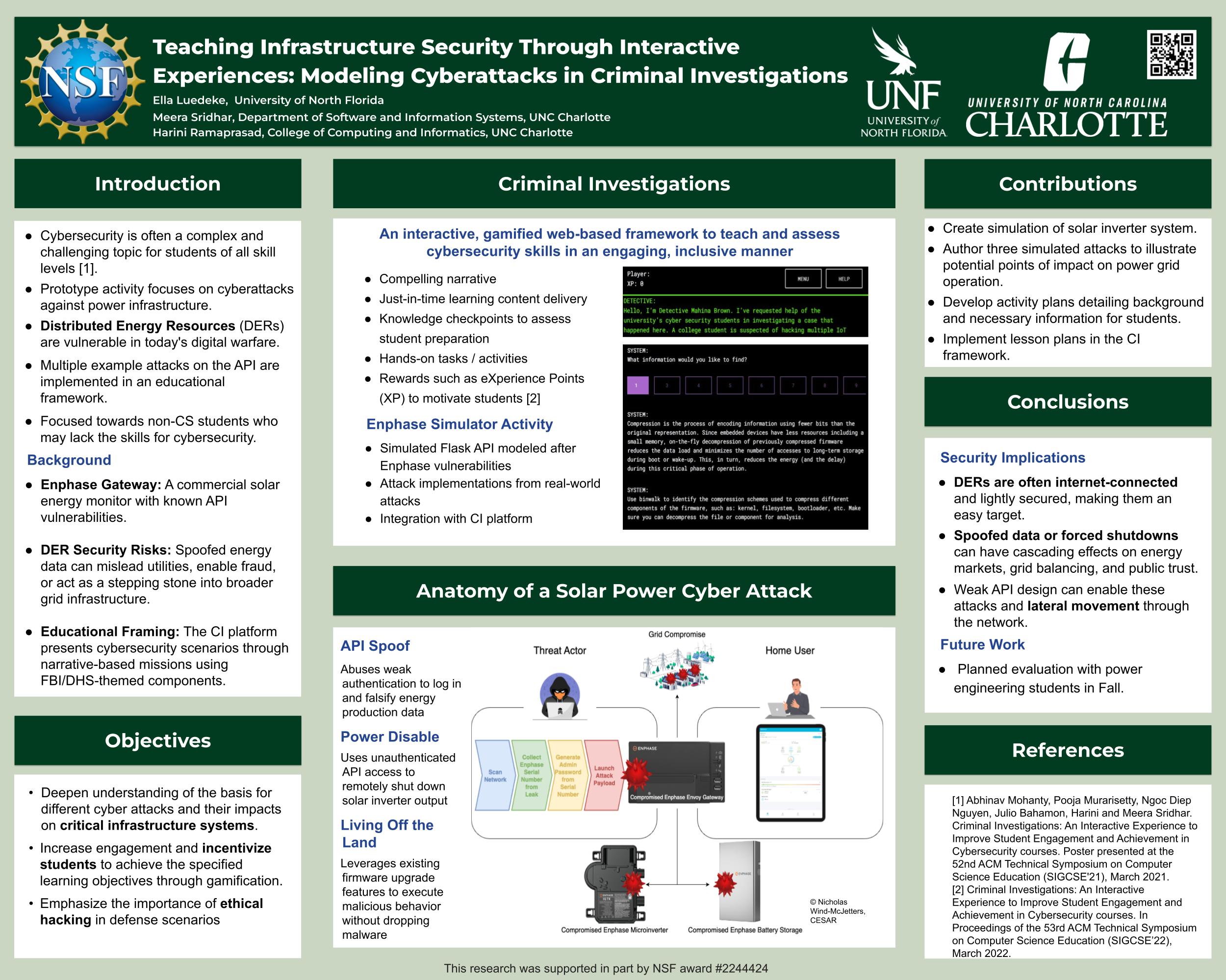 Created a cyber-physical simulation that models attacks on distributed energy systems such as solar inverters and EV chargers. The simulation uses realistic attack vectors like API spoofing and Living Off the Land attacks. Accepted to the 29th CISSE Conference & Journal.